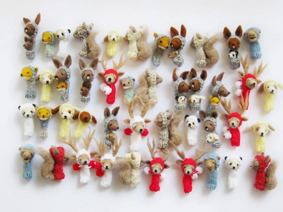 after my first son stared going to daycare and i was back at the studio, i spent loads of time experimenting with knitting and felting and came up with the first set of knitted- felted animals finger puppets. i felt it was a good place to start, and opened my etsy shop soon after that.